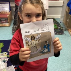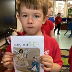 This week, we have been learning all about The Annunciation. The children listened carefully to the story of Angel Gabriel visiting Mary, and we talked about how Mary said “yes” to God. Everyone then made their own beautiful Angels, using a range of materials to design sparkling wings and bright halos.
