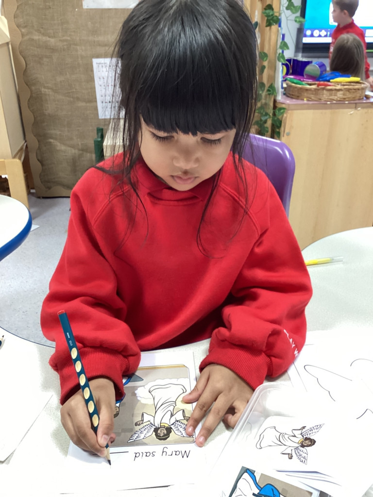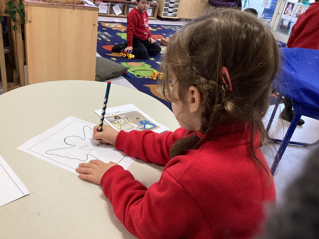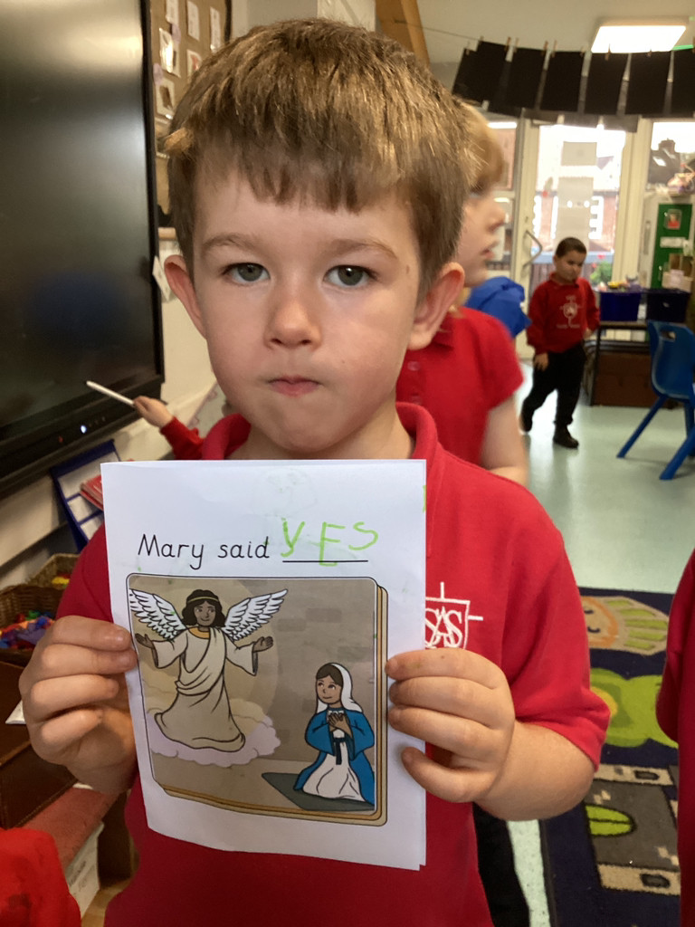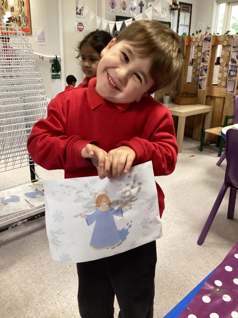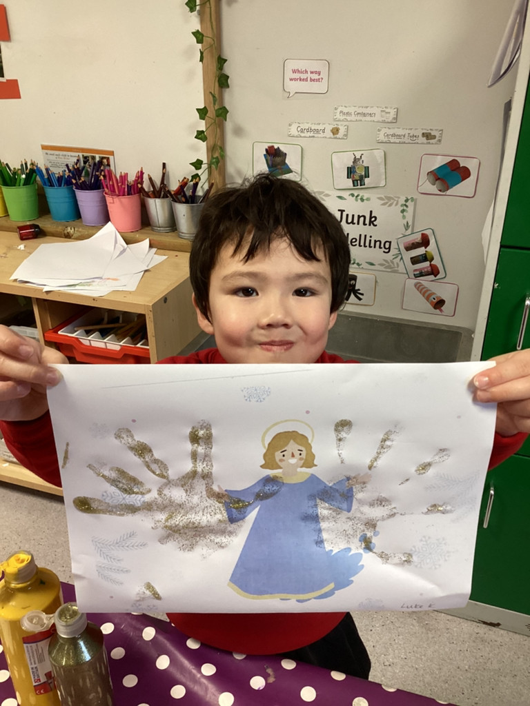 This week, we have been learning all about The Annunciation. The children listened carefully to the story of Angel Gabriel visiting Mary, and we talked about how Mary said “yes” to God. Everyone then made their own beautiful Angels, using a range of materials to design sparkling wings and bright halos.