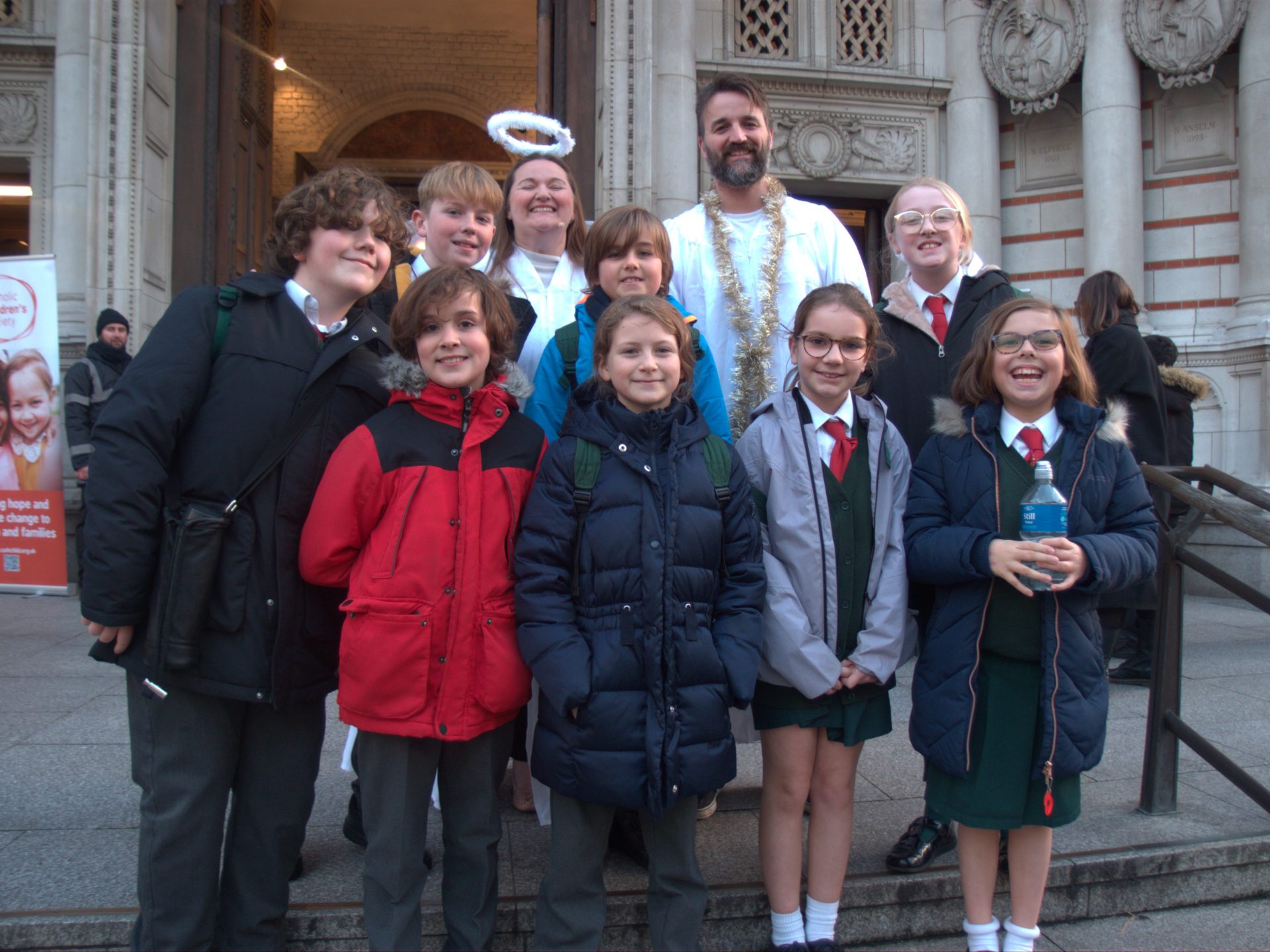 Our Pupil Chaplaincy Team enjoyed a truly memorable trip to Westminster Cathedral last week as they joined schools from across the diocese for the Catholic Children’s Society Advent Carol Service. The atmosphere in the cathedral was both joyful and reverent, with the beautiful choir carols filling the space and helping us reflect on the true meaning of Advent. A highlight for us was the lively retelling of the Nativity, brought to life with a real donkey and goat, which made the story feel wonderfully engaging (especially when the goat bleated at relevant parts of the Nativity story)! We even managed to meet the Angel Gabriel and the Angel Penelope outside the Cathedral afterwards! It was a special opportunity for our Chaplaincy Team to deepen their faith, celebrate the start of the Advent season, and feel part of the wider Catholic community. We were very proud of J from year 6, who read a prayer beautifully during the service.