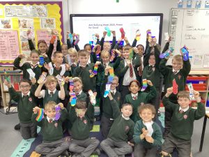Like other year groups we coloured in odd socks for Anti Bullying Week. We discussed how this shows that everyone is different and unique but equally important. We also acted out role plays on the theme of anti-bullying to demonstrate the importance of treating everyone with respect and consideration.
