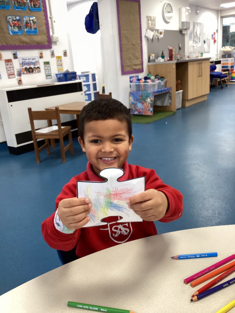 We began the week with a special circle time all about belonging. The children sat together and talked about what makes them special and how everyone belongs in our nursery. Each child decorated a piece of a large puzzle that represented them. Every piece was different, using their own colours, patterns, and ideas. When all the pieces were put together, the children could see how being unique and celebrating our differences helps us create something beautiful together.