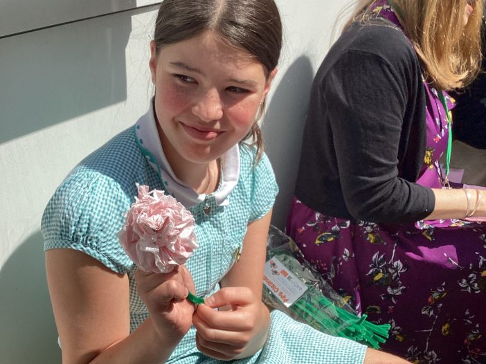 During a beautiful sunny lunchtime, the Prayer Leaders invited Key Stage 2 children to listen to worship music in the prayer garden and make some beautiful flowers as they remembered our Lady- Mary, the Mother of God. Everyone enjoyed the peace and prayerful, reverent atmosphere.
