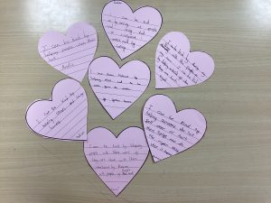 This week, we have been celebrating Anti-Bullying Week at school. On Wednesday, the children wore odd socks to school to show how we are all different, but all special. In circle time, we created a kindness web by saying something kind that we could do and then throwing the ball of wool to another member of the class. The children wrote their kindness promises on a heart shape to display in our classrooms.