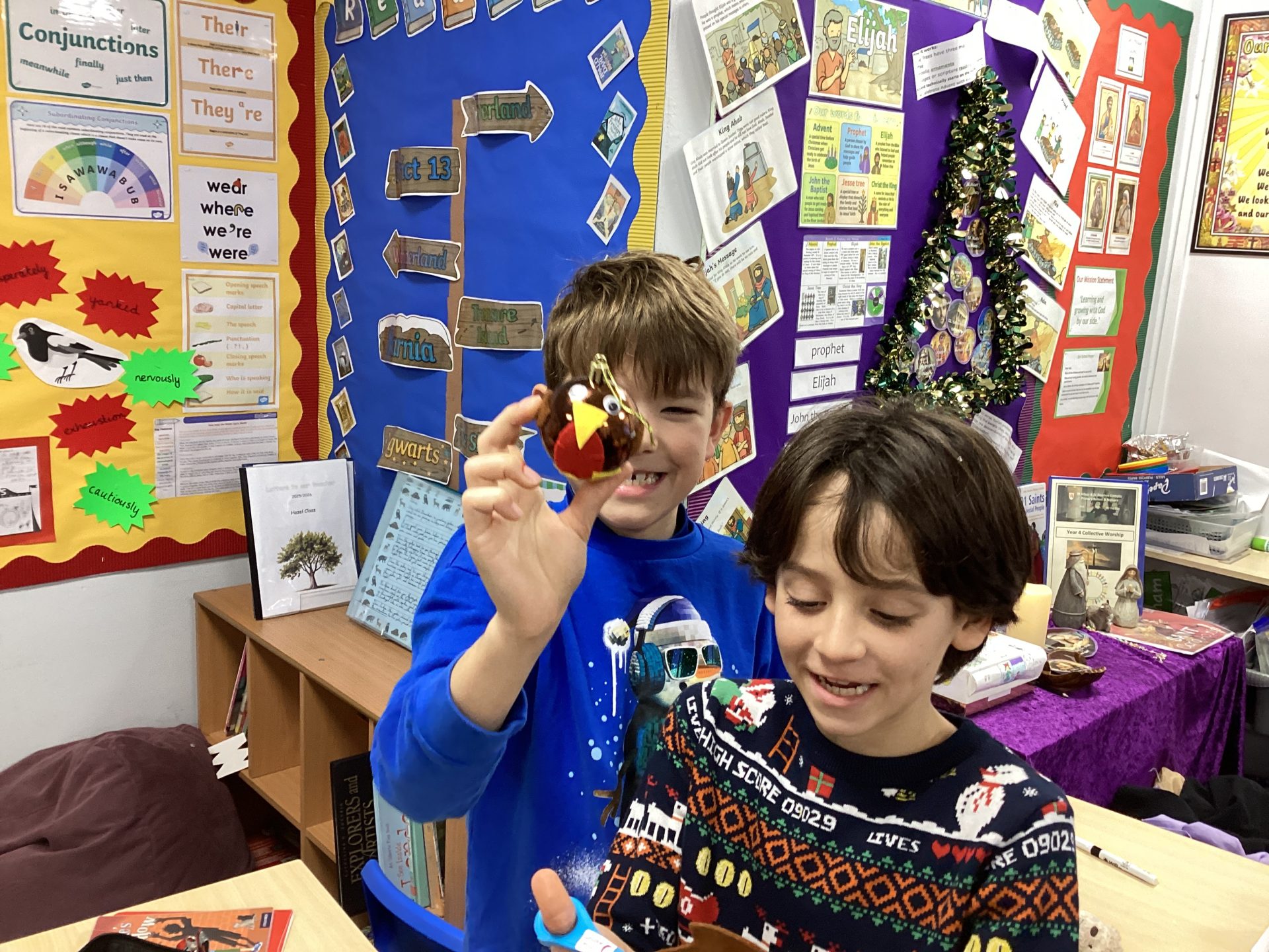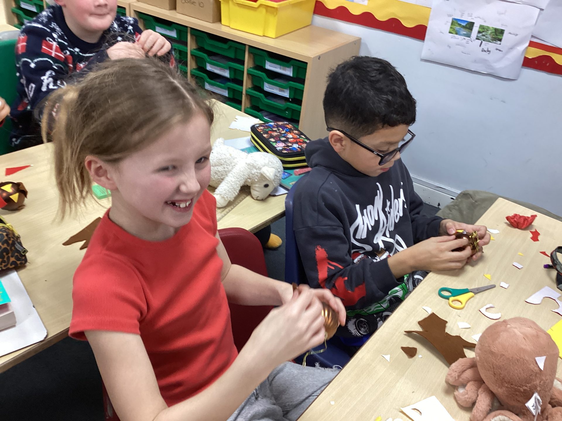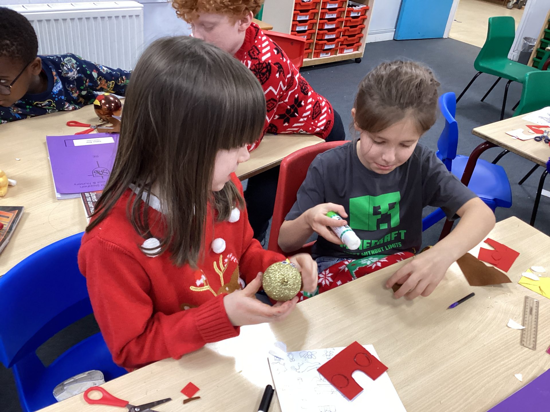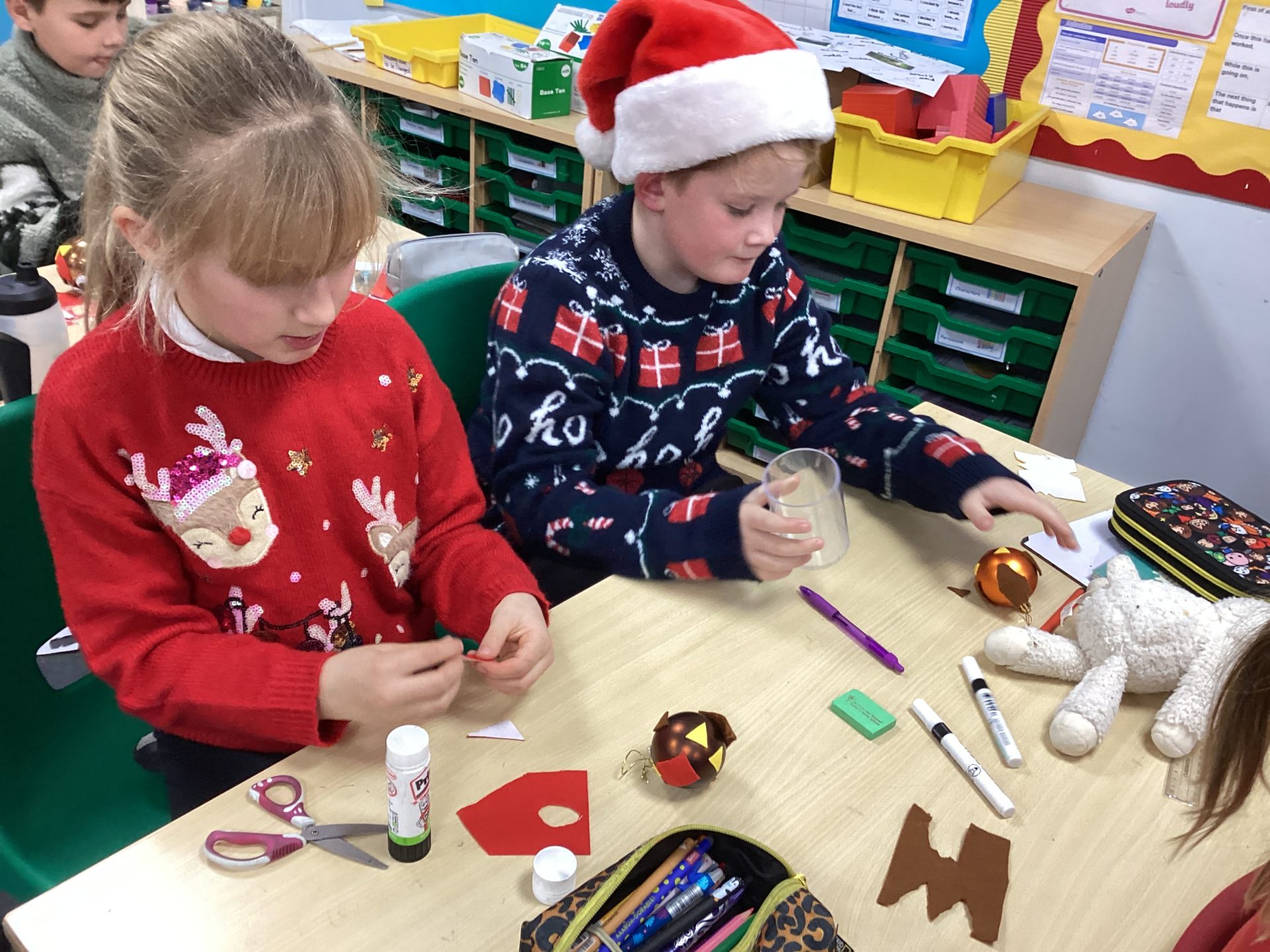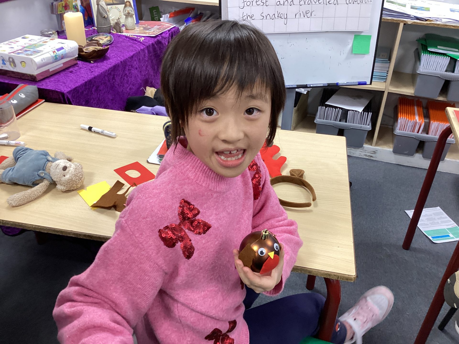 We celebrated Christmas by wearing Christmas jumpers, eating Christmas dinner and taking part in the Christmas fundraiser relay. We also made Christmas robin baubles to remind us of the lovely book ‘Coming Home’ that we have been reading and we put the last few baubles on our class Jesse trees.