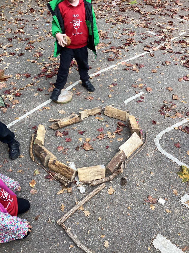 Our young artists have been taking their creativity outdoors as we explored the fascinating world of Andy Goldsworthy, a British artist known for his beautiful sculptures made entirely from natural materials. The children were inspired by Goldsworthy’s work to create their own radial art and insect designs using resources found in our outdoor area, including leaves, twigs, stones, petals, conkers and pinecones. They worked carefully to arrange their materials into beautiful patterns and imaginative insect shapes, developing both their artistic skills and appreciation for the natural world. Through this activity, the children have also been learning about shapes, patterns, and symmetry, all while enjoying hands on exploration in nature. It has been a wonderful opportunity for them to express their creativity, work collaboratively, and connect with the environment around them.