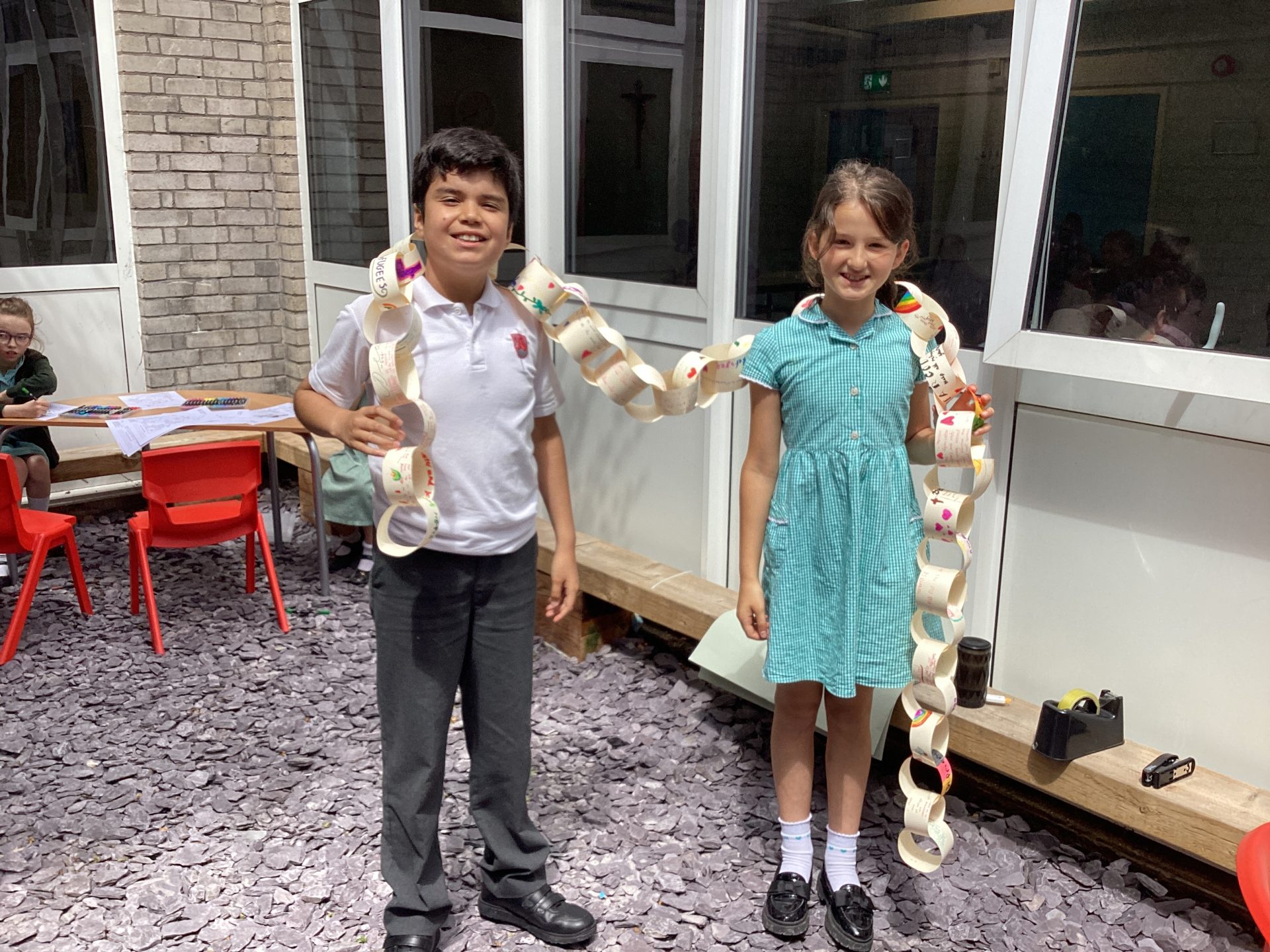 Finally, our Prayer Leaders have been leading lunchtime activities for Refugee Week in the upper site Prayer Garden. Our long chain of prayers that we have written for refugees has grown every day.