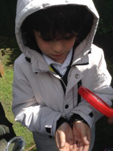 This week in our outdoor learning we looked at the foliage of different plants and then did some rubbing of them, using crayons. We also looked for minibeasts, using magnifying glasses.
