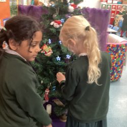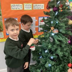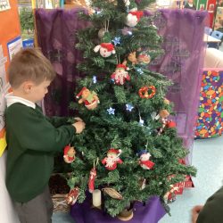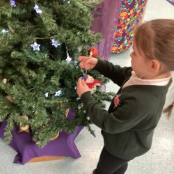 Our classrooms are looking extra festive too. Our Christmas trees are now sparkling with lights and decorations, which were carefully placed on the tree by each child.