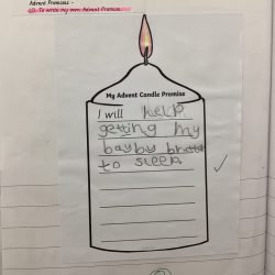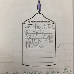 The children have been busy creating their own Advent promises, each child wrote a promise that they wanted to achieve during Advent.