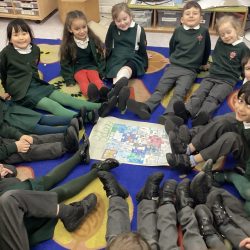 Finally, on Friday, we had a sharing assembly. We showed off our We Belong jigsaw posters and learnt how other year groups explored the Wellbeing Week.