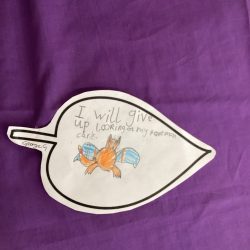 The children have all written a Lenten promise; this may involve, fasting, giving and praying.