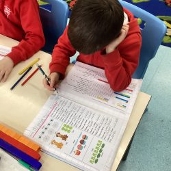 In Maths we have been solving word problems that involve the mathematical language of difference and fewer. We used multi-link cubes to visually represent the amounts and then compared them to calculate the answers.