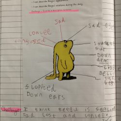 We started a new book this week, linked to our Space topic. Alexis Deacon wrote Beegu who is not supposed to be on Earth and is lost. She is a friendly little creature, but the Earth People don’t seem to want a creature that looks different in their community. However, she meets some school children who are really kind and welcoming. We reflected on the feelings that she must have experienced and then created story-maps to retell the story to one another. This has supported oracy, which the school is keen to promote.