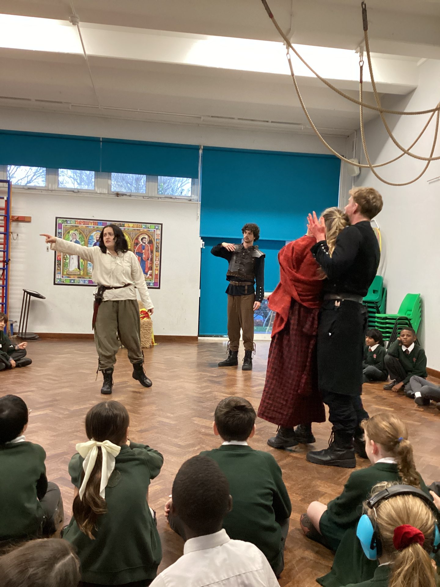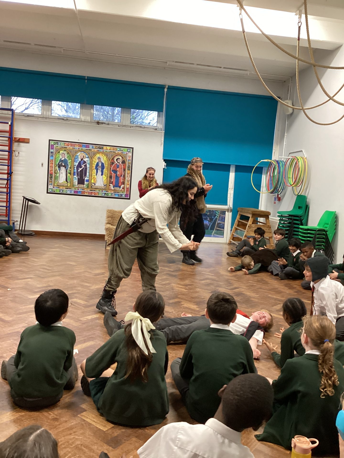 On Monday, Year 5 had an exciting afternoon exploring Shakespeare’s Macbeth through hands-on activities and performances. The children enthusiastically took on key roles and joined performers from the Young Shakespeare Company to act out memorable scenes, practicing the rhythm and language of Shakespeare’s text. As they performed, the class paused to discuss the play’s themes, such as ambition and moral choices, and to reflect on the thoughts and feelings of key characters at different points in the story. By the end of the workshop, the children had a deeper understanding of Macbeth and felt more confident in expressing themselves through drama and performance. We are now looking forward to studying the play in more detail in class. A special thank you to all the parents for their generous contributions, which made this creative experience possible.