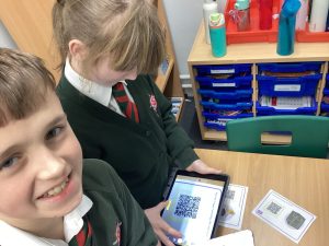 In Computing, we started our new topic of Data. We explored how barcodes are used and learned about the differences between standard barcodes and QR codes. The children went on a QR code scavenger hunt to answer questions about changes in technology, linked to our Science topic of Electricity.