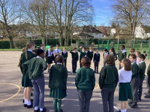 This week in Year 6, we have been learning about pie charts and line graphs. We started the week by creating a class-sized chart in the playground, considering how to work out the size of each segment and the angle that would be required. We spoke about common percentage-to-angle conversions such as 25% = 90° and 10% = 36°. When we returned to class, we solved some problems involving pie charts.