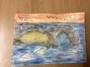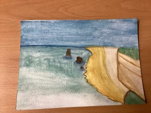 This week in Year 6. the children have been creating watercolour paintings inspired by their Geography topic of Coastlines. In preparation for their final piece they spent lessons practicing sketching the key features we had learned about in our Geography lessons and working with the watercolour paints to experiment with different colour combinations and washes.